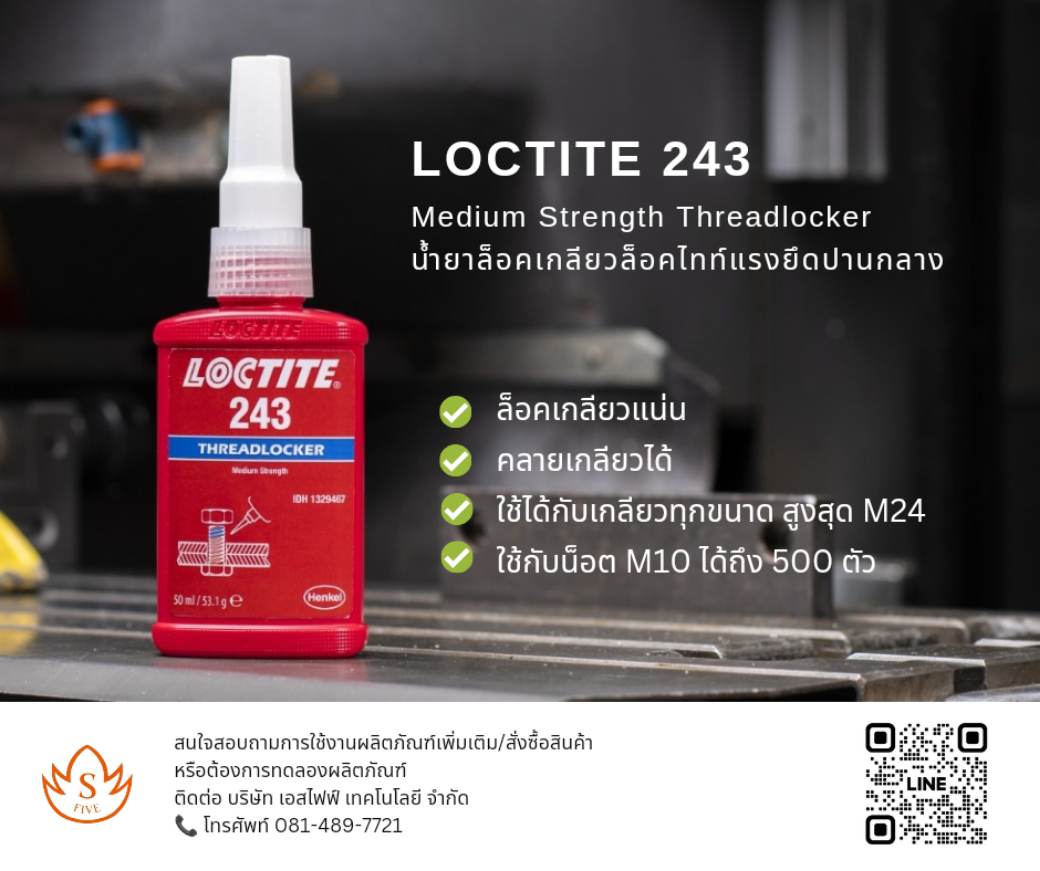 ล็อคไทท์ ขึ้นชื่อได้ว่าเป็นตัวท็อปตัวแม่ ของน้ำยาล็อคเกลียวเลยก็ว่าได้ แบรนด์นี้มีชื่อเสียงมายาวนานกว่าร้อยปี พัฒนาผลิตภัณฑ์มาเรื่อยๆ จนสูตรปัจจุบันนี้ มีคุณสมบัติที่เหมาะกับเครื่องจักรแทบจะทุกเครื่องเลยก็ว่าได้ น้ำยาล็อคเกลียวล็อคไทท์ 243 เป็นน้ำยาล็อคเกลียวแรงยึดปานกลาง ออกแบบมาเพื่อใช้งานล็อคเกลียวเครื่องจักรที่อาจจะเกิดการคลายตัวจากการใช้งาน แม้ว่าจะเป็นแค่ Micromovement แต่การป้องกันไว้ก่อนถือเป็นการทำงานแบบโปรแอคทีฟ 👍👍 และน้ำยาล็อคเกลียวสีน้ำเงินตัวนี้ ก็สามารถถอดคลายด้วยการใช้เครื่องมือช่างทั่วไปถอดออกได้ สามารถใช้กับน็อตขนาดใหญ่สุดได้ถึง M24 เลยทีเดียว ไม่ต้องใช้แหวนแบบต่างๆ มาช่วยก็ได้ และใช้กับน็อตได้ทุกขนาดแบบนี้ สโตร์ มีพื้นที่เหลือจัดเก็บอย่างอื่นเพิ่มแล้ว สนใจสอบถามการใช้งานผลิตภัณฑ์เพิ่มเติมหรือต้องการทดลองผลิตภัณฑ์กับงานของท่านติดต่อ บริษัท เอสไฟฟ์ เทคโนโลยี จำกัด สามารถติดต่อเราได้เลยผ่าน 📞 โทรศัพท์ 081-489-7721