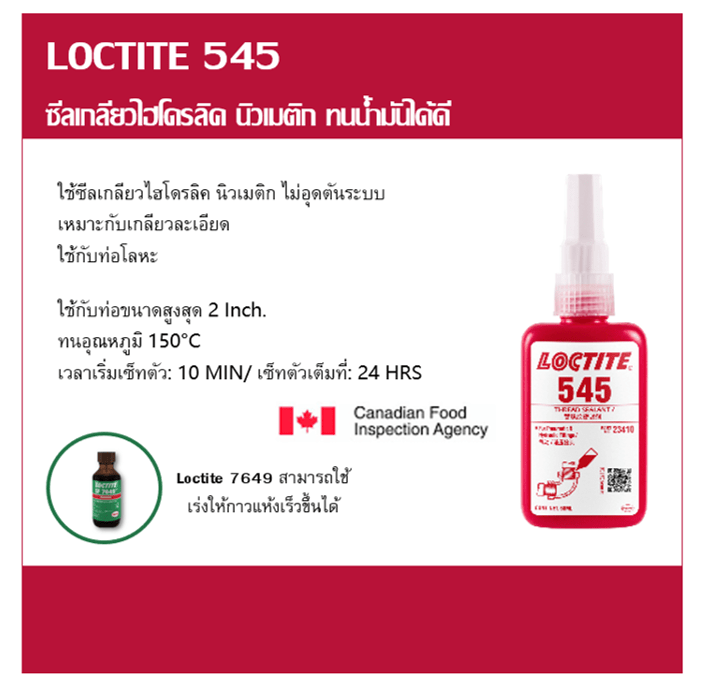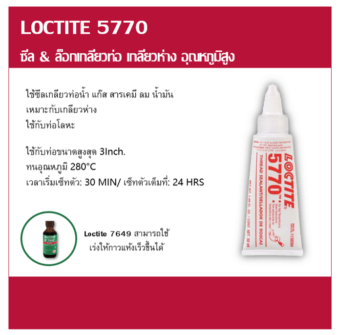 ป้องกันรั่วของลม น้ำ น้ำมัน และสารเคมี บริเวณเกลียวท่อแ จากการทำงานที่เจอกับแรงสั่นสะเทือนตลอดเวลา